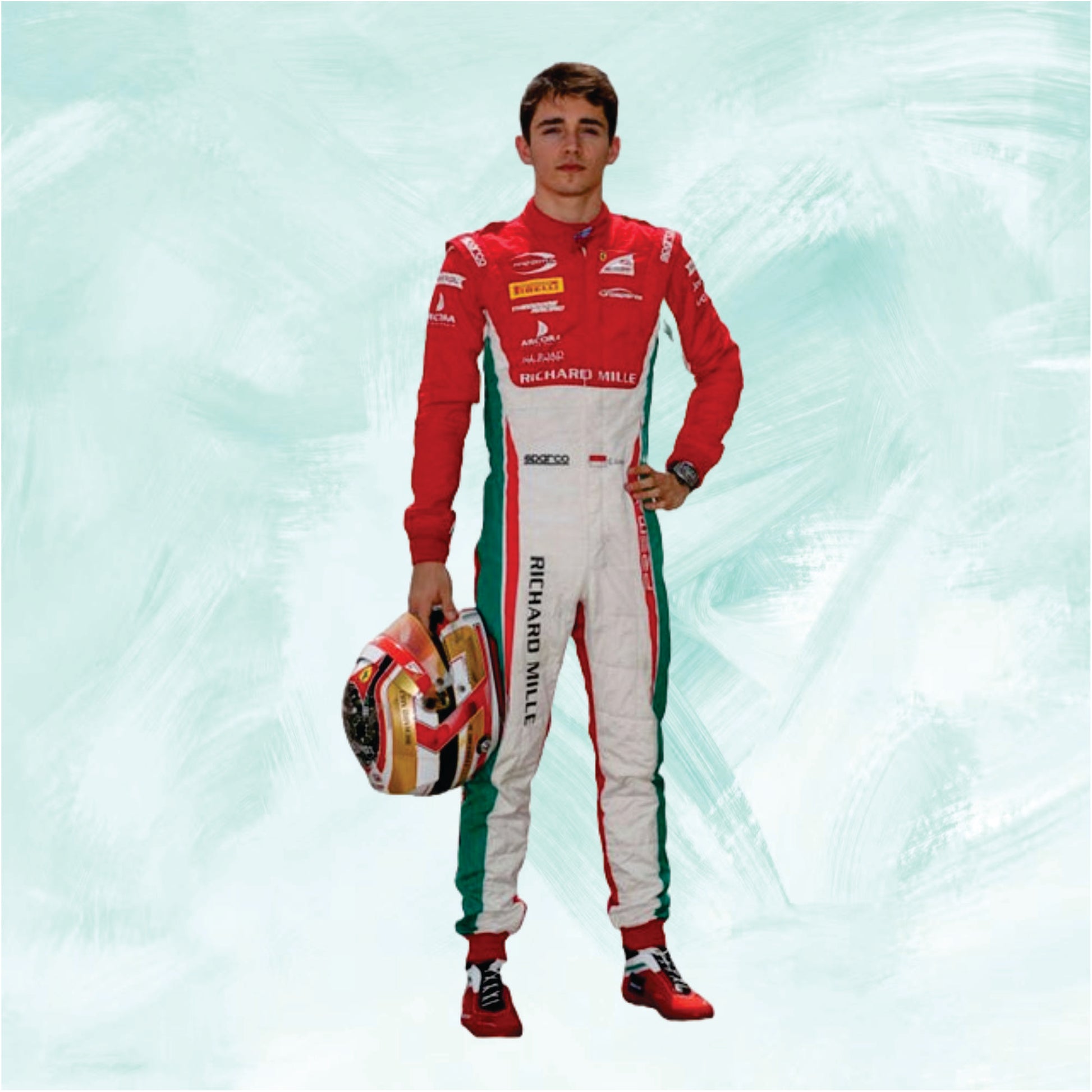 Celebrate the season that launched Charles Leclerc's career into Formula 1. This is a high-quality replica of the suit worn by the future Ferrari star during his dominant 2017 FIA Formula 2 Championship winning season for PREMA Racing.
