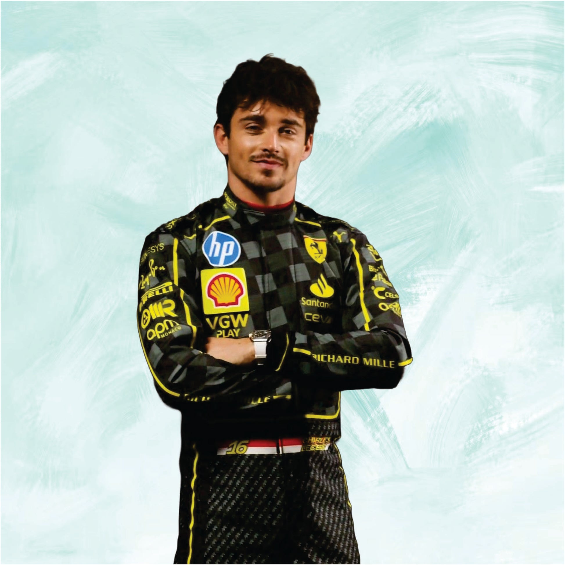 Driver Identification: Clearly displays CHARLES LECLERC's name and his racing number 16.